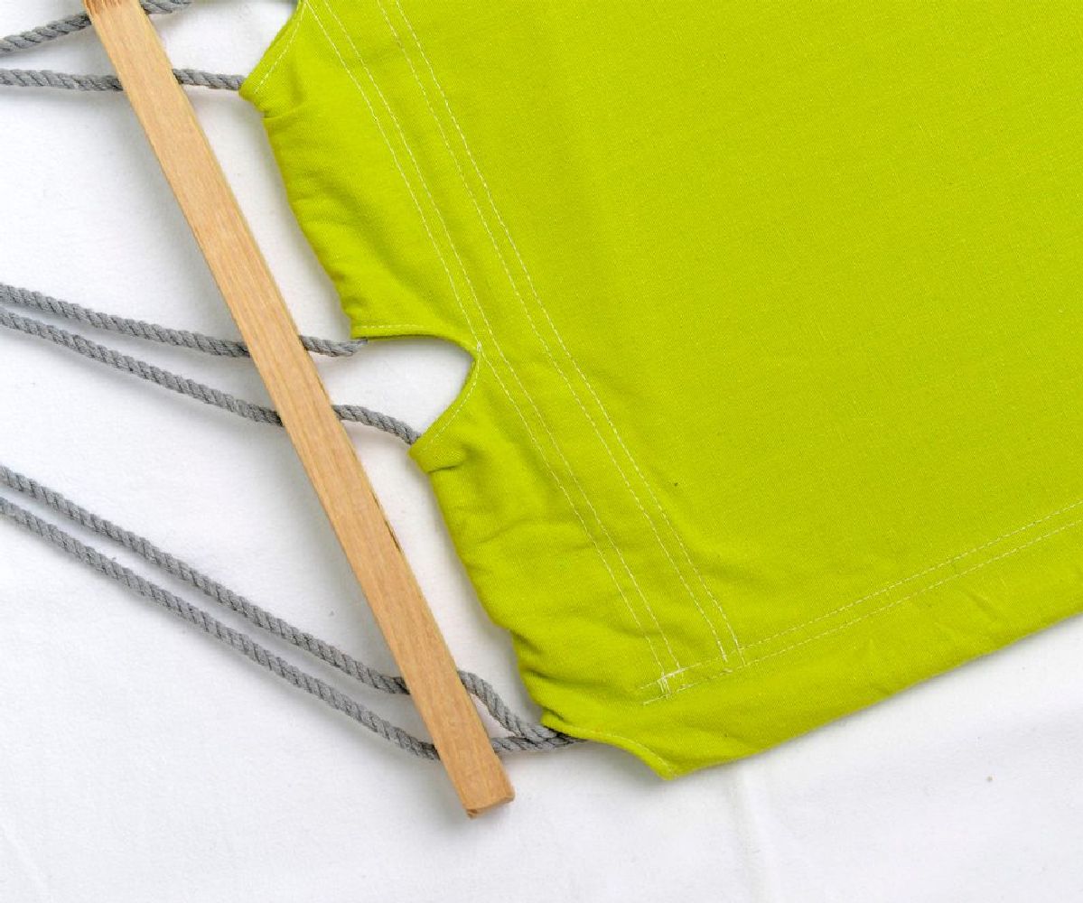 Duży hamak, zakończony z obu stron drążkami usztywniającymi. Hamak jest bardzo wygodny, wykonany został z 80% recyklingowanej bawełny oraz 15% poliestru.
