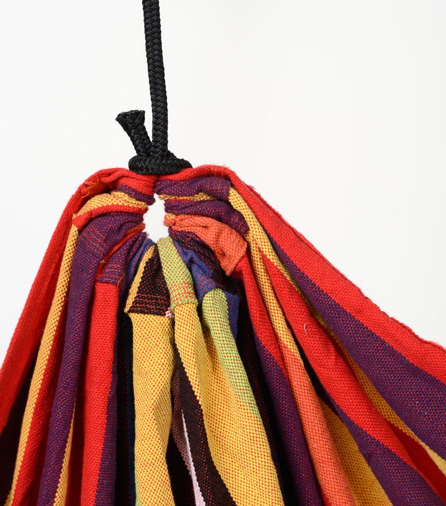 Siedzisko wykonane jest z nowoczesnej tkaniny ""Eltex"", która wyglądem przypomina bawełnę, jednak nie absorbuje wody tak jak ona, szybko schnie na słońcu oraz jest odporna na pleśń i promieniowanie UV. Z powodzeniem może służyć podczas całego okresu letniego i wisieć w tym czasie na powietrzu.