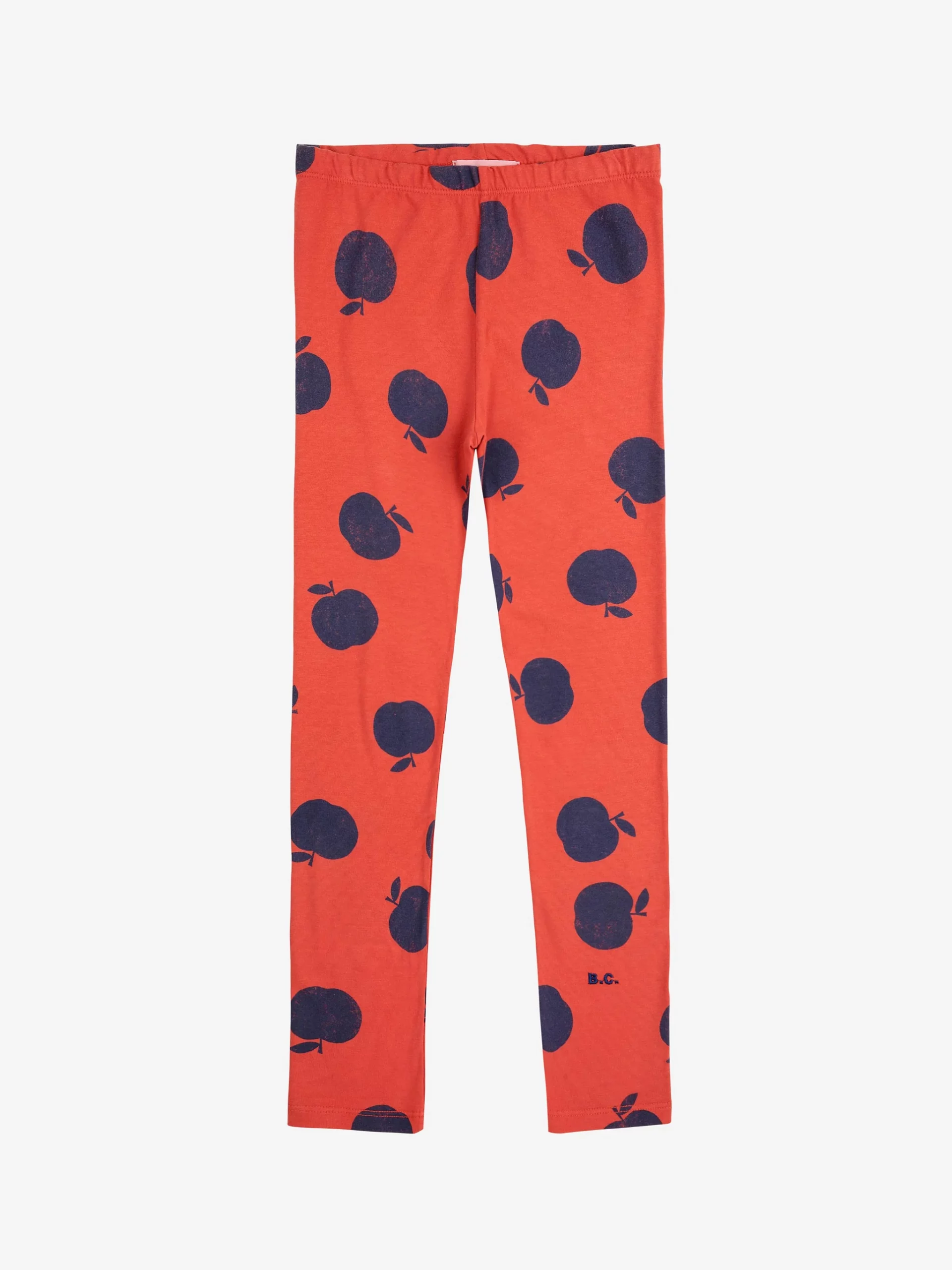 Czerwone bawełniane legginsy z nadrukiem w jabłuszka