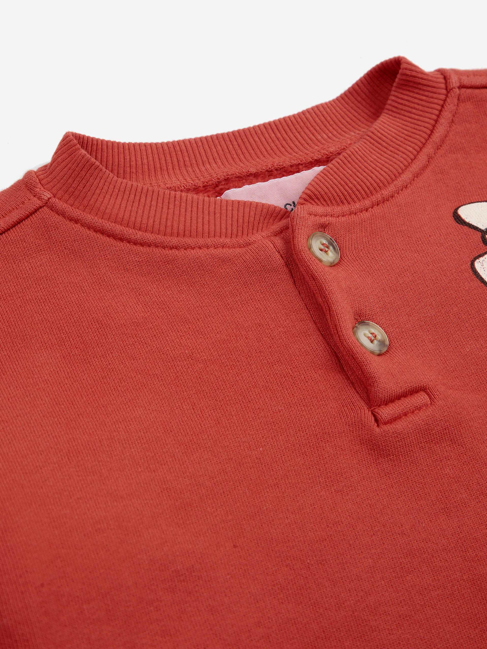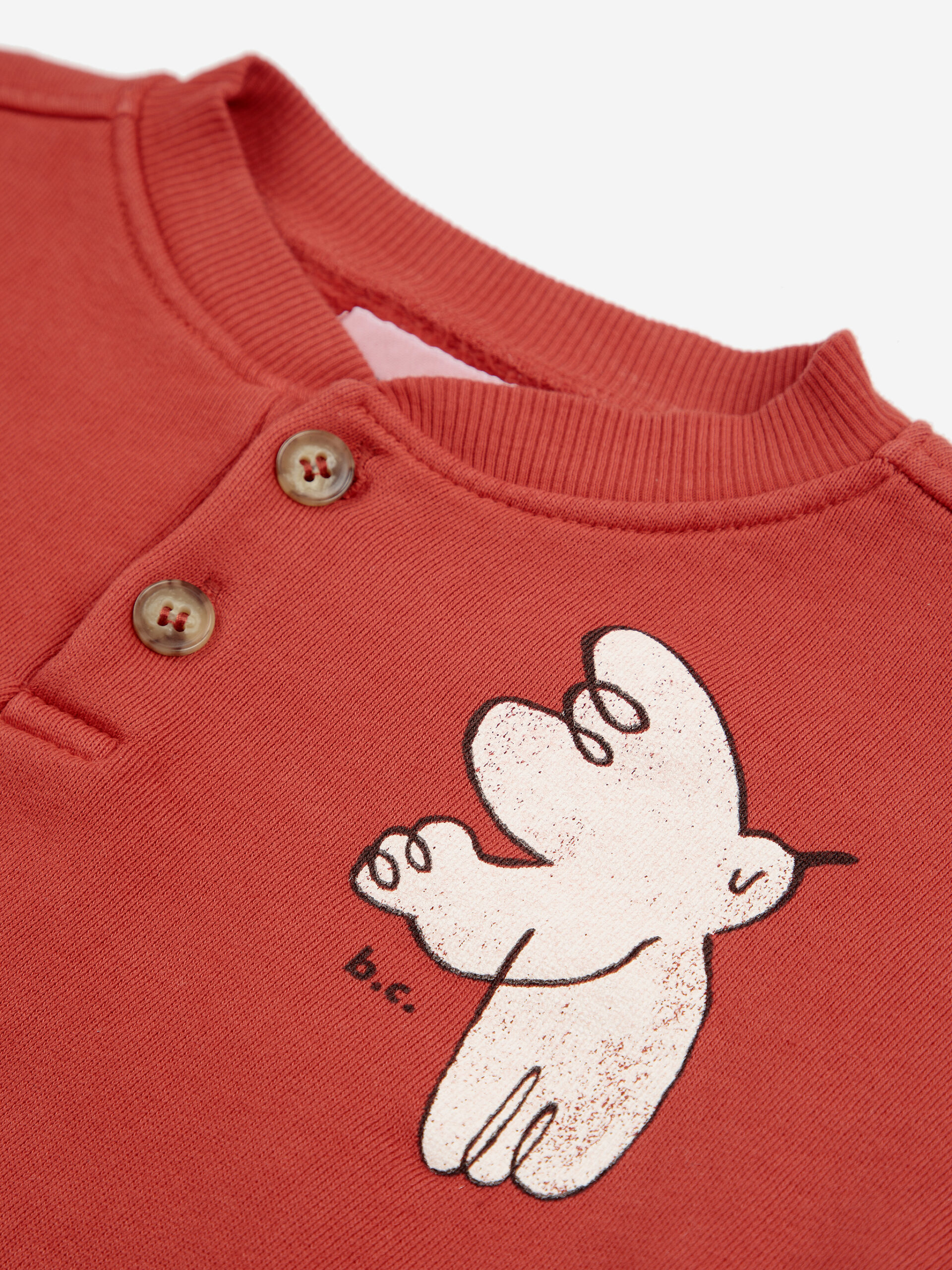Bluza niemowlęca od hiszpańskiej marki BOBO CHOSES, w kolorze czerwonym, z ilustracją małego ptaszka.