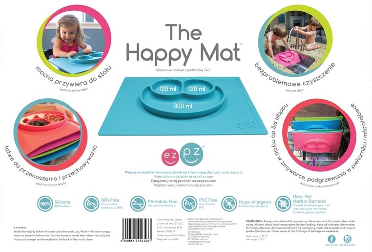 Mini Mat amerykańskiej marki EZPZ (czyt. izipizi) to nieduża, poręczna podkładka i trójdzielny talerzyk w jednym, stworzony z najbezpieczniejszego silikonu. Pasuje do większości blatów krzesełek do karmienia. Dzięki zamykanemu opakowaniu, jest to idealne rozwiązanie na podróż.