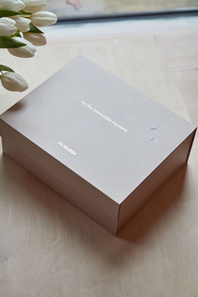 Wykonane z eleganckiego, wysokiej jako艣ci kartonu, wyposa偶one w torebki i woreczki do przechowywania Baby Memory Box b臋dzie 艣wietnym prezentem dla m艂odych i przysz艂ych rodzic贸w.