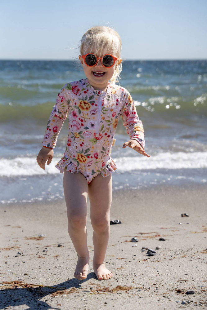 Z naszym uroczym strojem k膮pielowym z filtrem UV dla dzieci, s艂oneczne dni na basenie, pla偶y czy w ogrodzie b臋d膮 jeszcze przyjemniejsze! Wspania艂y str贸j z d艂ugimi r臋kawami i urocz膮 falbaniast膮 sp贸dniczk膮 oferuje ochron臋 UV 50+ i jest przyjemny dla delikatnej sk贸ry dziecka. Fantastyczne, r臋cznie rysowane ilustracje zachwyc膮 dzieci w ka偶dym wieku.