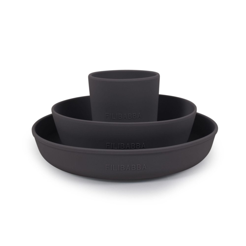 Filibabba Silikonowy zestaw obiadowy Stone grey