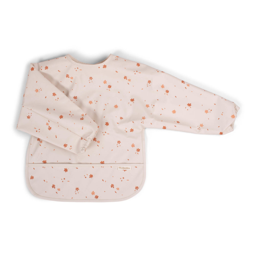 Praktyczny i bardzo funkcjonalny śliniak Filibabba z rękawami i wygodną kieszonką. Śliniak wyposażony jest w gumki przy nadgarstkach oraz praktyczne zapięcie przy szyi, chroniące przez zabrudzeniem. Wykonany został z poliestru z miękką powłoką PU, co daje mu właściwości wodoodporne. Śliniak można prać w 30 stopniach.