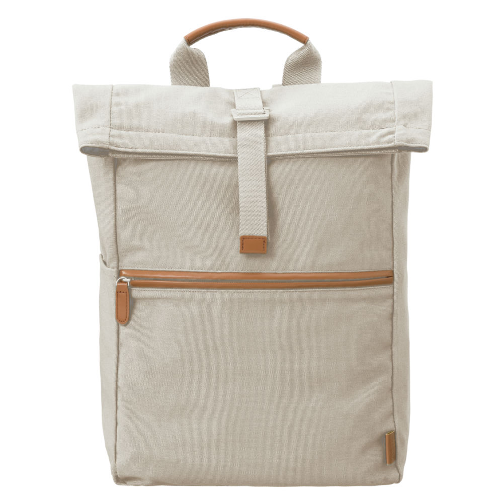 Plecak wykonany jest z wodoodpornej bawełny pochodzącej z recyklingu. Podszewka wykonana jest z przetworzonych butelek PET.