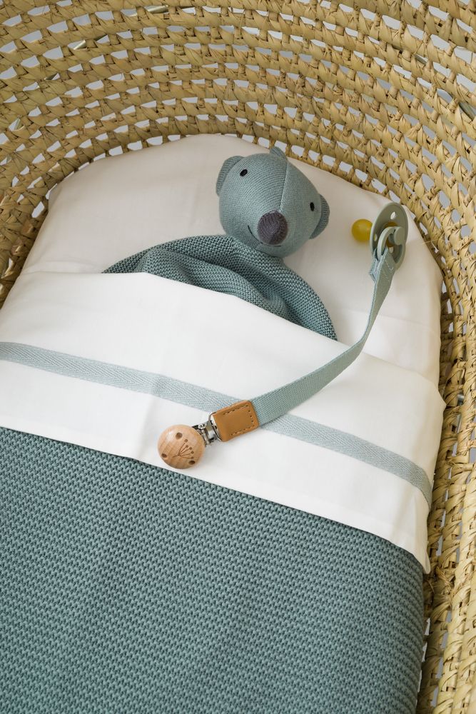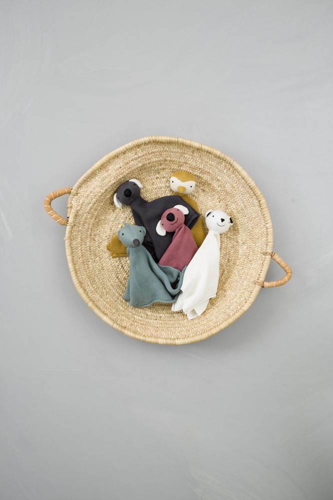 Przytulanka uszyta jest z bawełny organicznej z certyfikatem GOTS.