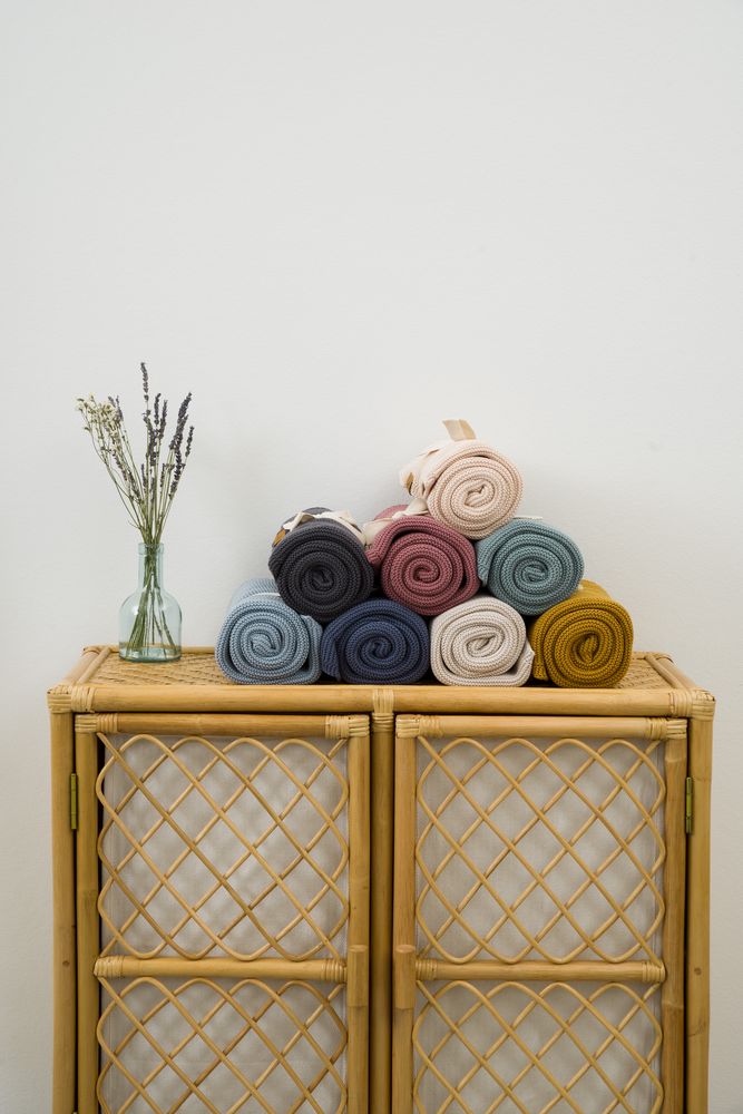 Kocyk dzianinowy uszyty z najwyższej jakości bawełny organicznej.