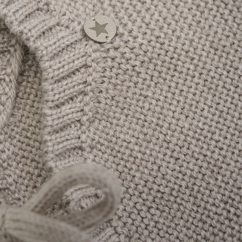 Niemowlęca wełniana czapka bonetka z pomponikiem od marki Huttelihut w kolorze beżowym.