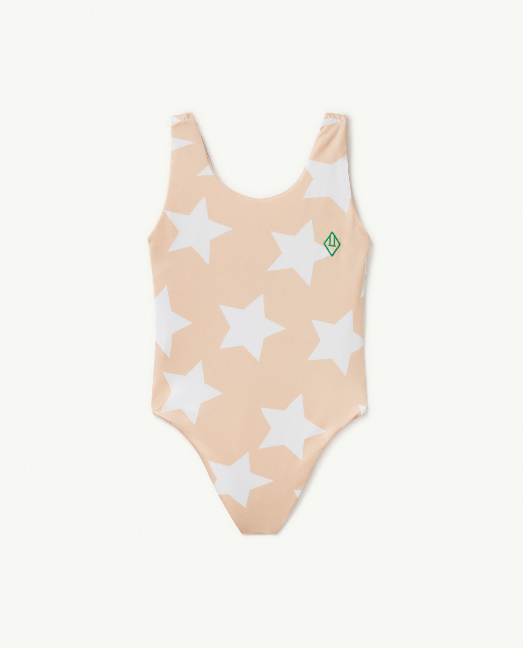 Beżowy kostium kąpielowy od The Animals Observatory. Wyróżnia go motyw białych gwiazdek. Posiada wycięcie na plecach. Uszyty z wysokiej jakości materiałów.