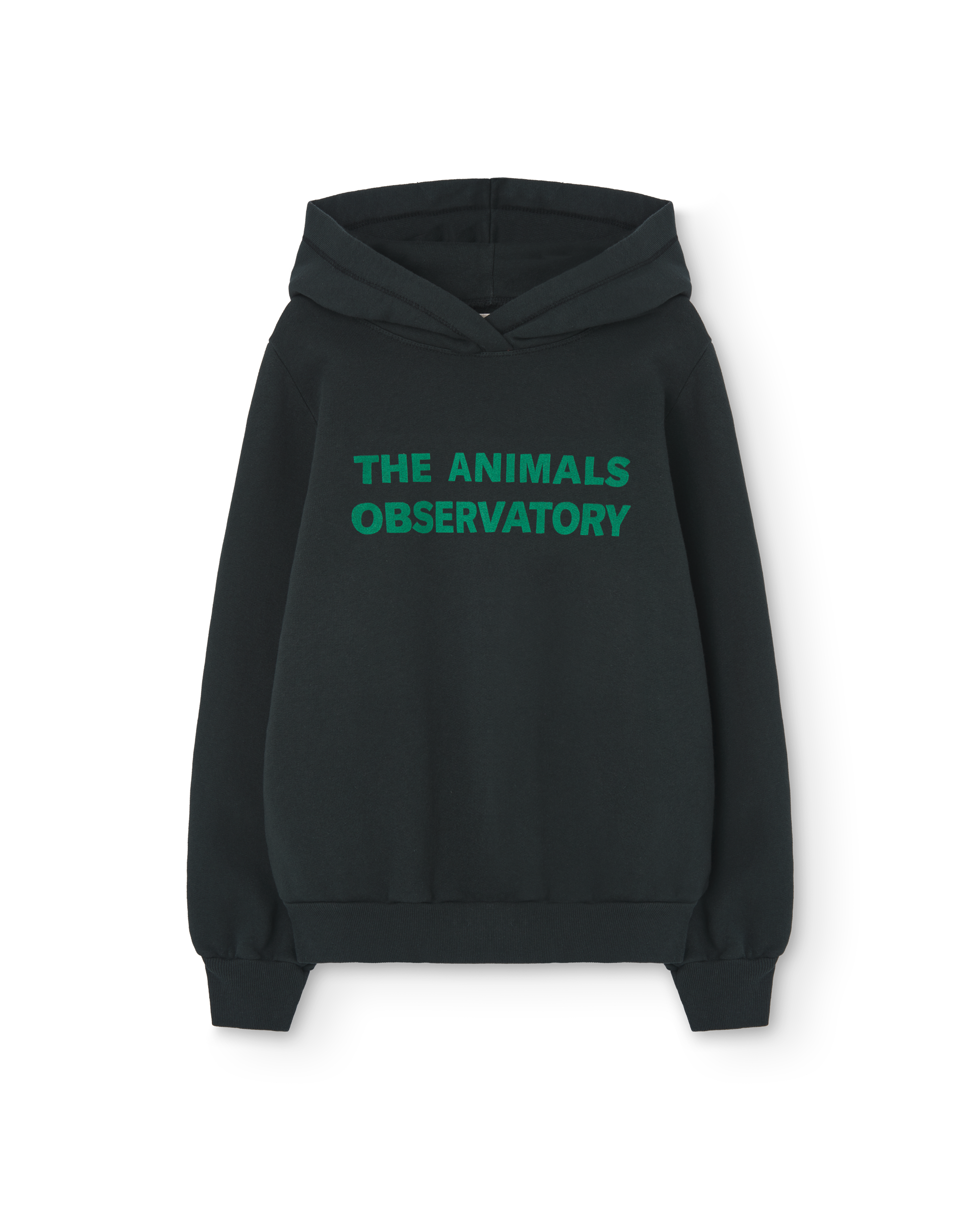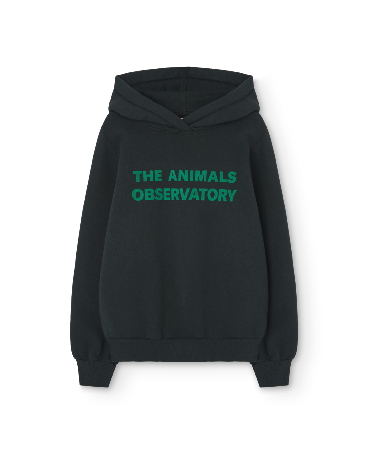 Dziecięca bluza z kapturem od portugalskiej marki The Animals Observatory w kolorze zielonym z napisem marki.