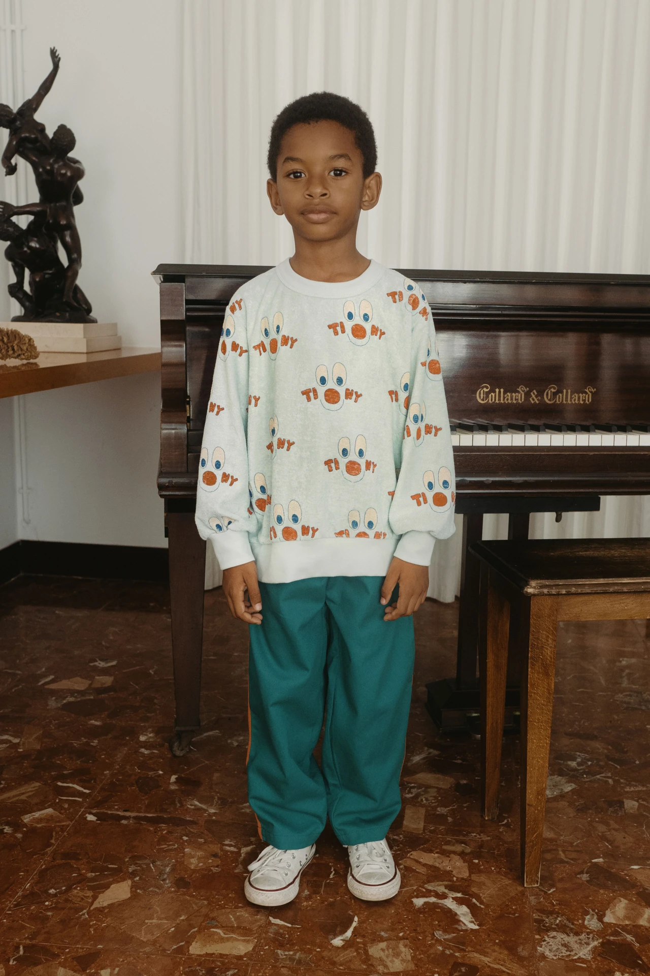 Bawełniana bluza frotte z nadrukiem buziek Clowna od hiszpańskiej marki Tiny cottons.